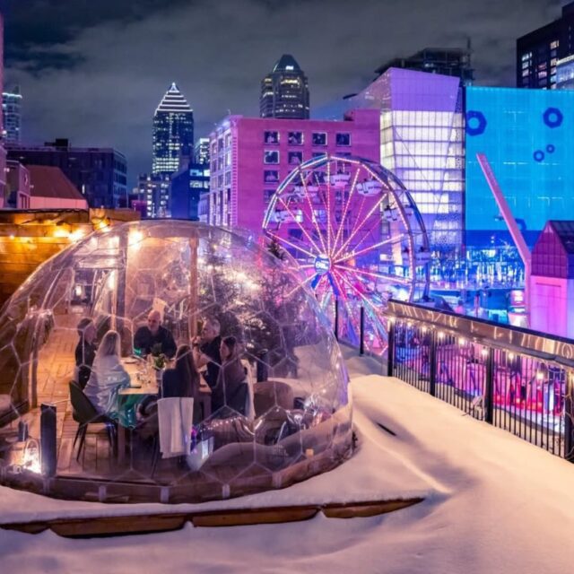 Le Bivouac, installé au DoubleTree par Hilton Montréal, met de l’avant un menu festif inspiré des produits québécois et une vue directe sur le centre-ville et la Place des Arts. À mi-chemin entre club social, bar artisanal et bistro moderne, l’adresse propose aussi de célébrer dans l’un de ses dômes extérieurs chauffés, perchés au-dessus de la place des Festivals pour une expérience unique.